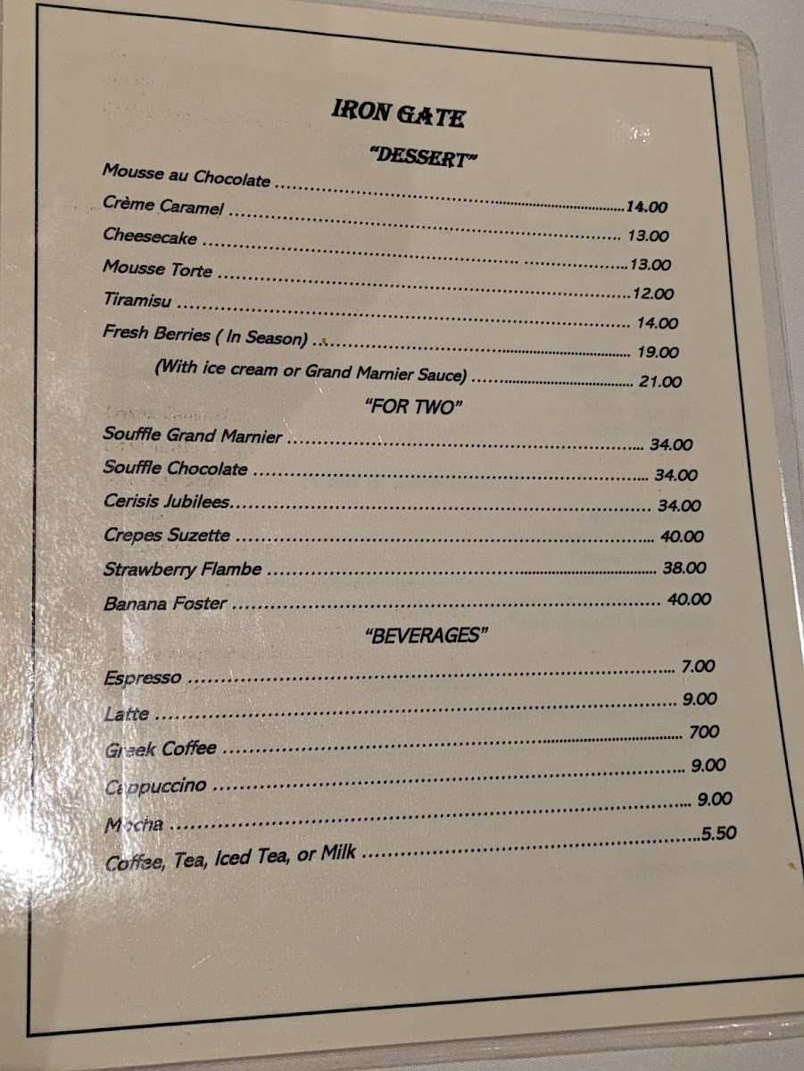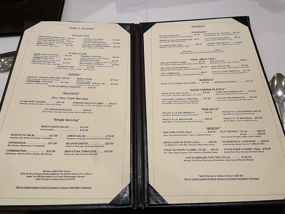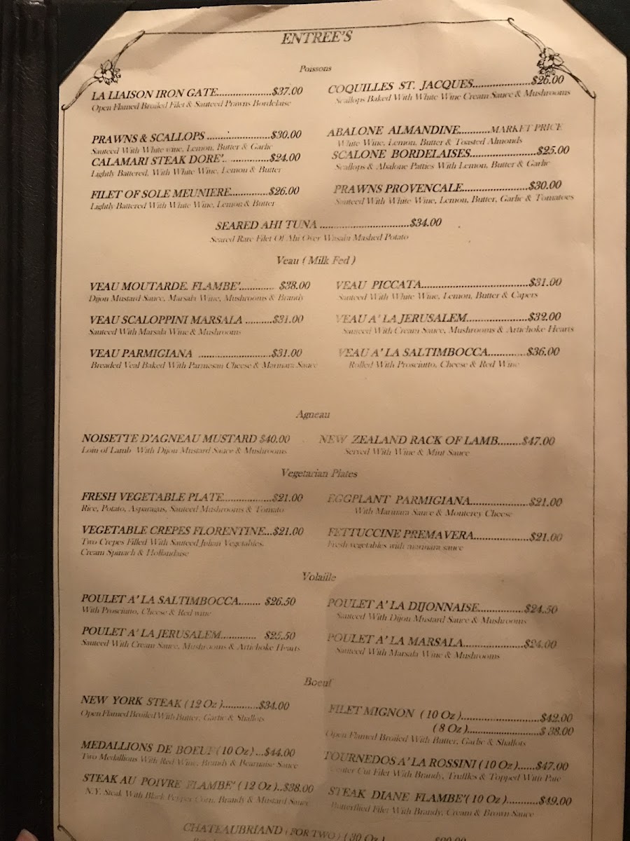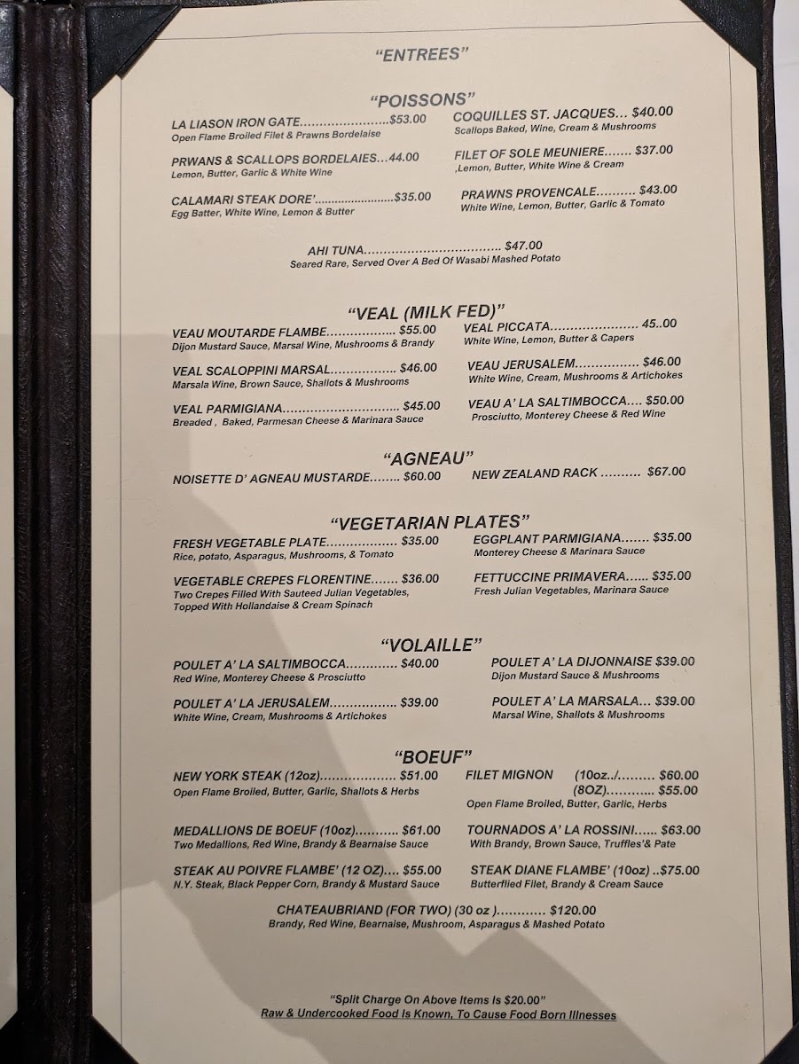 Introducing The Iron Gate, a culinary gem nestled in Belmont, California, known for its exquisite dining experience that balances elegance and tradition. The menu showcases a selection of sumptuous veal dishes like the Veau Piccata and Veau Parmigiana, alongside enticing seafood options such as Coquilles St. Jacques and Prawns Provencale, each crafted with a masterful touch. Guests rave about the old-school charm and attentiveness of the staff, creating a warm ambience for special occasions and everyday dining alike.
